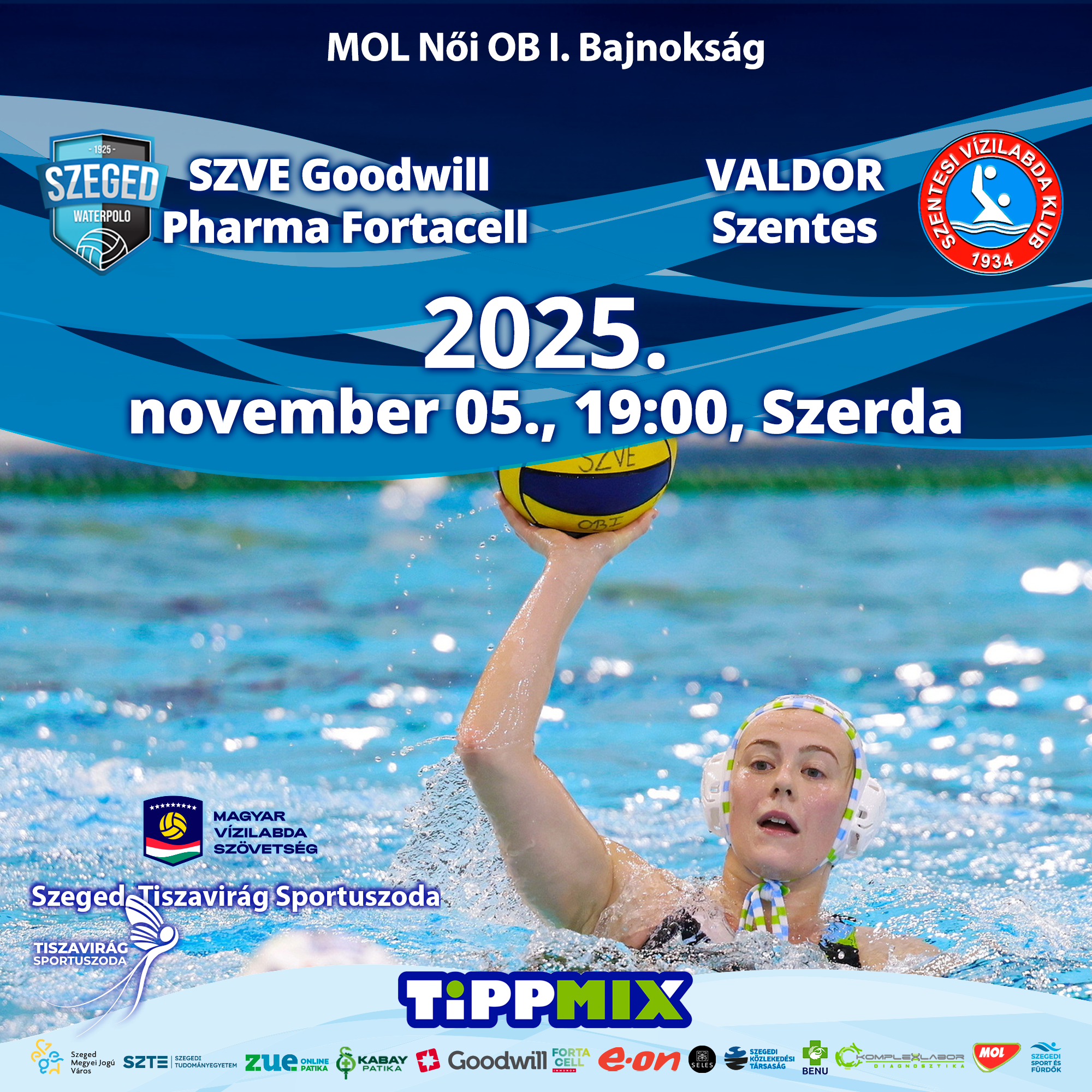Női OB I-es csapatunk, az SZVE Goodwill Pharma Fortacell szerdán este hazai közönség előtt csap össze a VALDOR Szentes együttesével a MOL Női OB I. Bajnokság 6. fordulójában. A Tiszavirág Sportuszodában mindig különleges hangulatúak ezek a megyei rangadók – a lányok most is mindent megtesznek majd, hogy a szegedi szurkolók örülhessenek a végén.